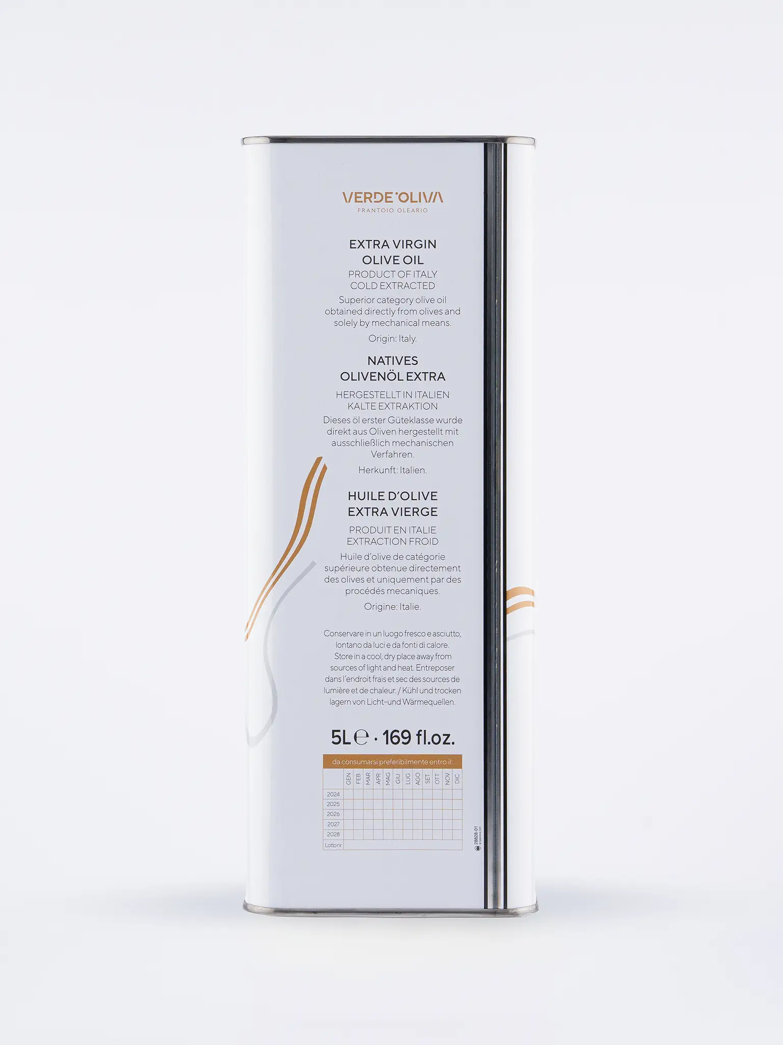 La Lattina da 5 litri di Olio EVO Cultivar Coratina è pensata per chi non vuole rinunciare alla qualità e desidera un formato pratico e conveniente per la cucina di tutti i giorni.